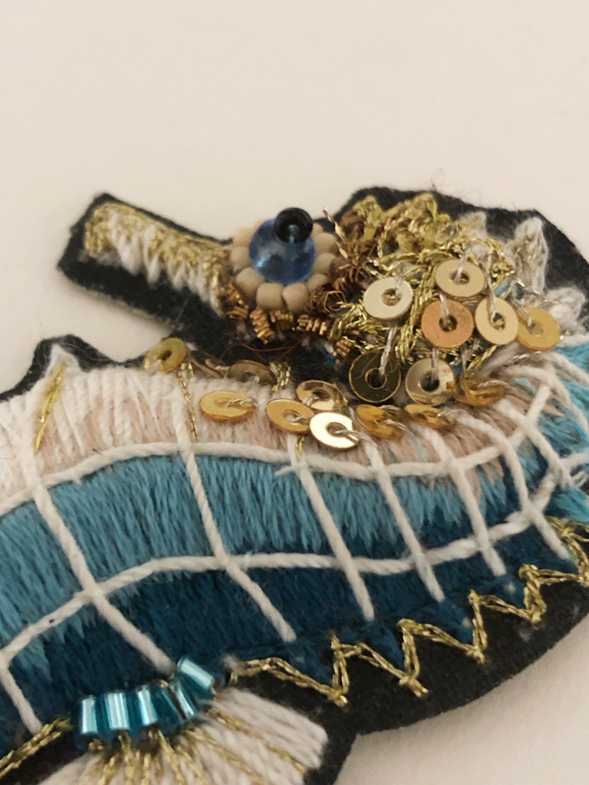 Au gré des humeurs et des envies, la broche brodée s'adapte sur vos pulls, vestes et gilets à l'aide de son épinglette avec goupille de sureté.
