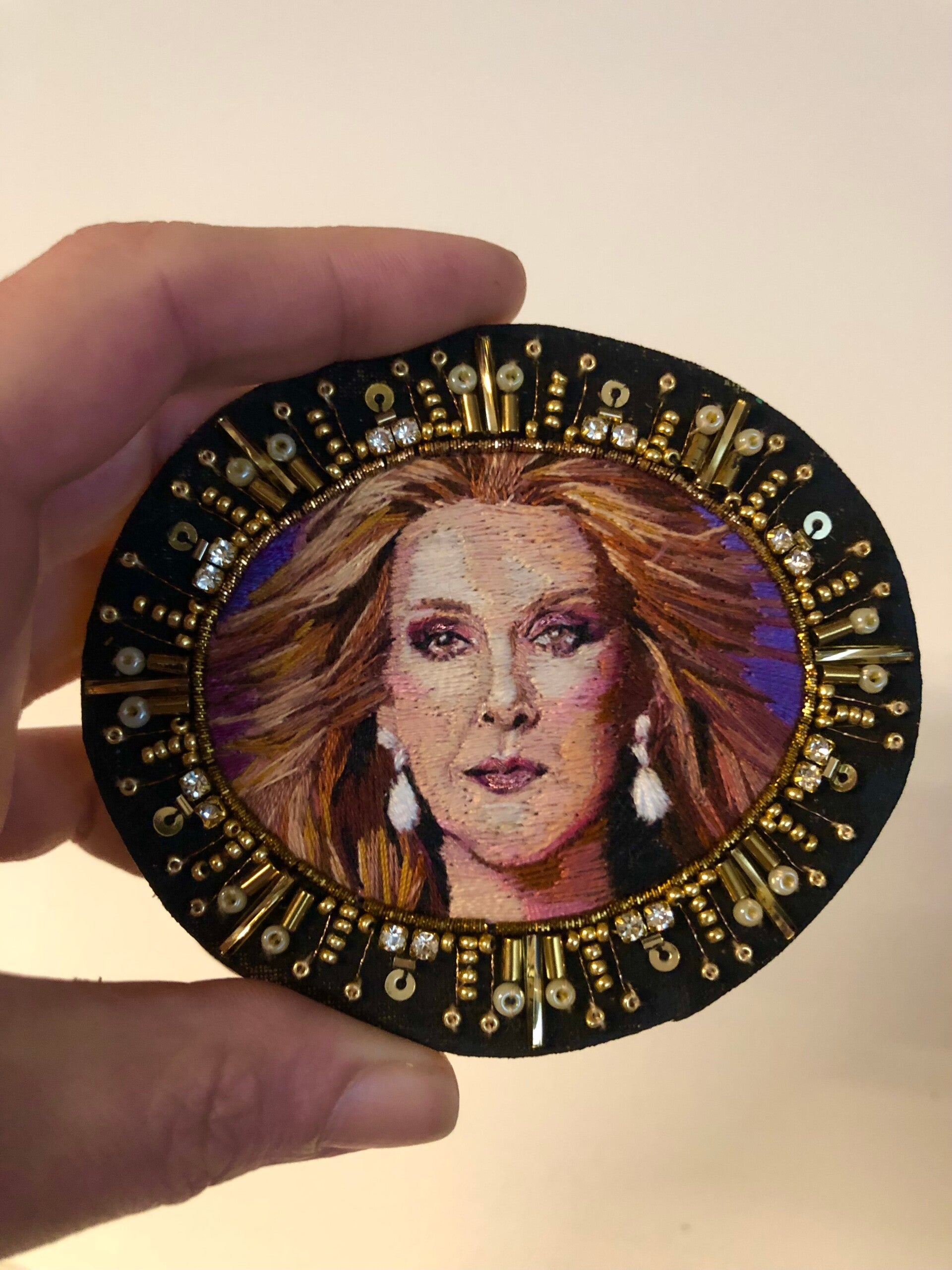 Au gré des humeurs et des envies, la broche brodée s'adapte sur vos pulls, vestes et gilets à l'aide de son épinglette avec goupille de sureté.