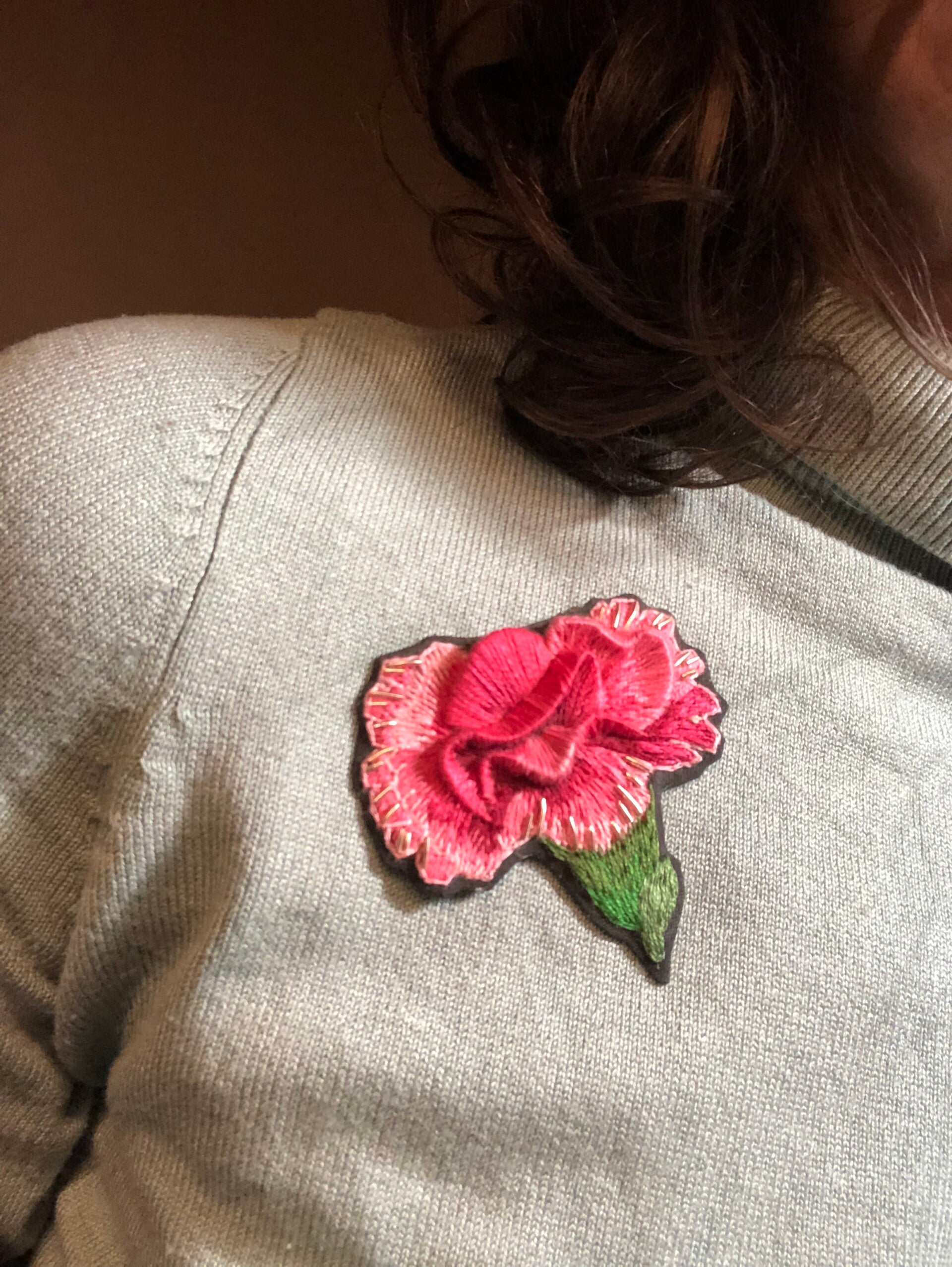 Au gré des humeurs et des envies, la broche brodée s'adapte sur vos pulls, vestes et gilets à l'aide de son épinglette avec goupille de sureté.