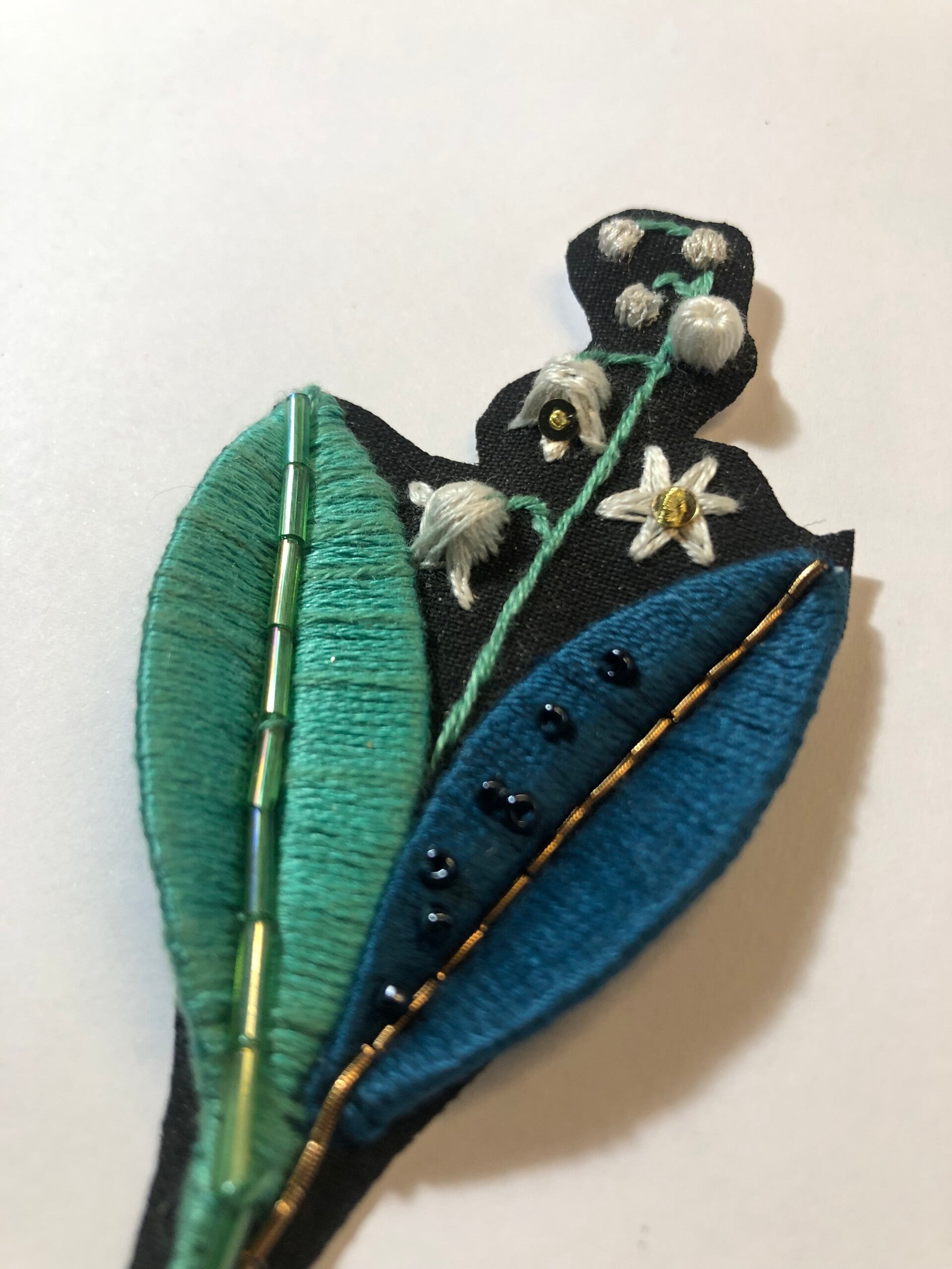 Tous les articles En Avril sont brodés à la main par mes soins. Broderie d'or ou de fils de coton, c'est un concentré de techniques, de matériaux et de savoir faire qui sont mis en oeuvre pour vous offrir un bijou unique.