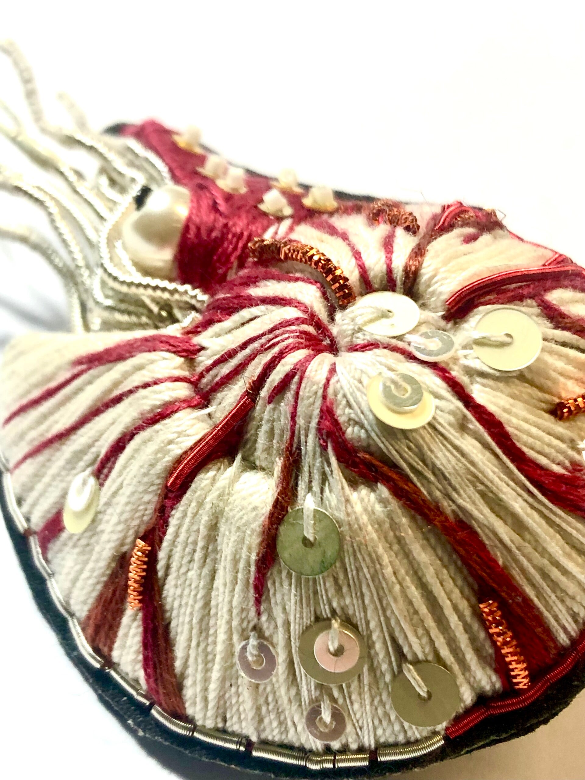 Tous les articles En Avril sont brodés à la main par mes soins. Broderie d'or ou de fils de coton, c'est un concentré de techniques, de matériaux et de savoir faire qui sont mis en oeuvre pour vous offrir un bijou unique.