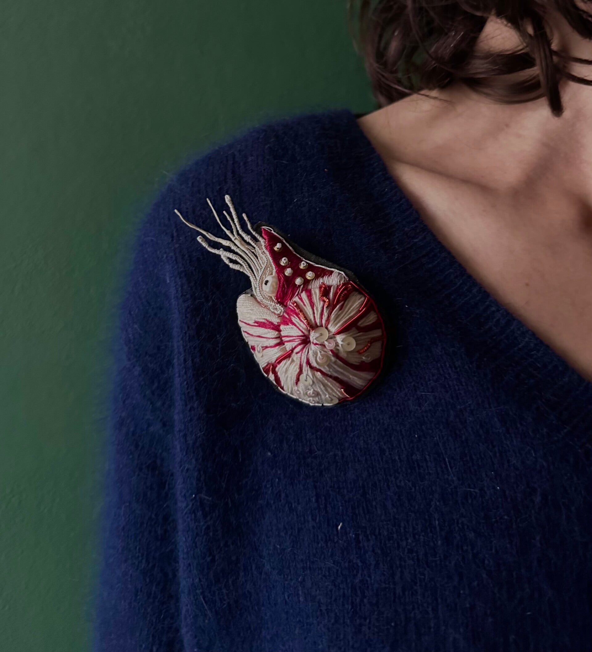Au gré des humeurs et des envies, la broche brodée s'adapte sur vos pulls, vestes et gilets à l'aide de son épinglette avec goupille de sureté.